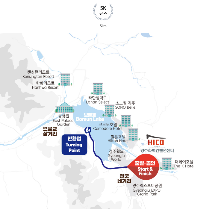 10k 코스는 출발점에서 시작해 보문교 삼거리,